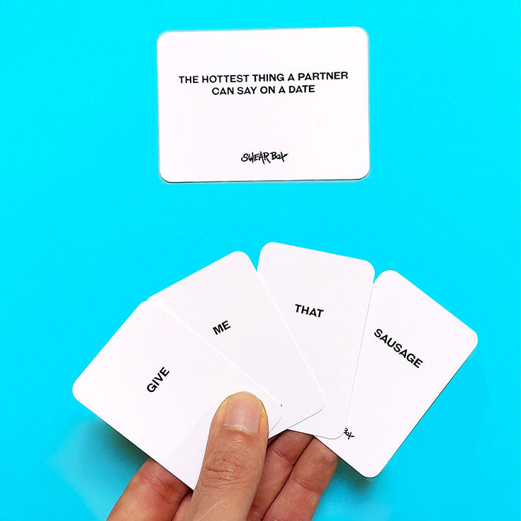 Use up to 6 word cards from your 12 card hand to create responses to a prompt each round. Sounds simple, and it is, but a third of the cards are 'dark cards' featuring swear words, and other 'NSFW sentence enhancers' that instantly make even the most innocent of prompt questions take a dark turn for the worse.